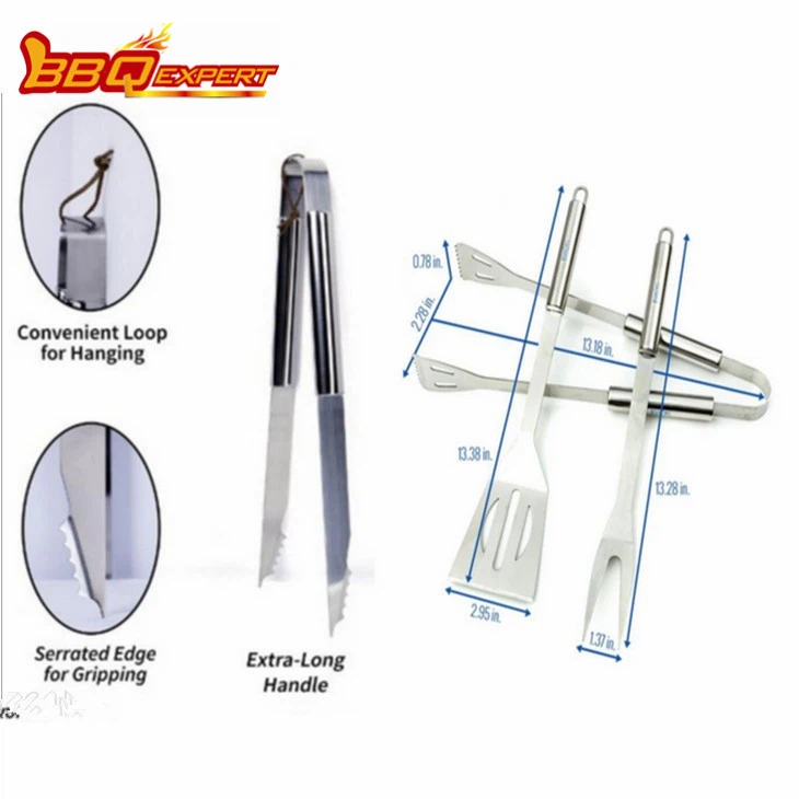 У нас также есть действительно крутыеАксессуары для гриля сгущают щипцы для барбекюПолем Эти щипцы густые и крепкие, что делает их идеальными для переворачивания гамбургеров, стейков и других вкусностей на гриле.